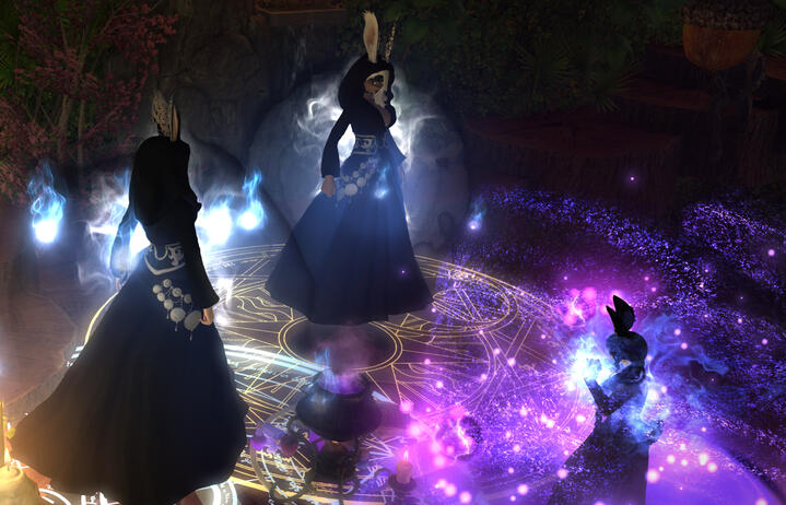 The Highpriestess, the Oracle, the Empath, and the Muse are the guardians of this haven, their presence felt throughout the entire Covenstead. Within the walls, an impressive library awaits, filled with librams and books from all over Eorzea, including rare magics from tribal cultures.
