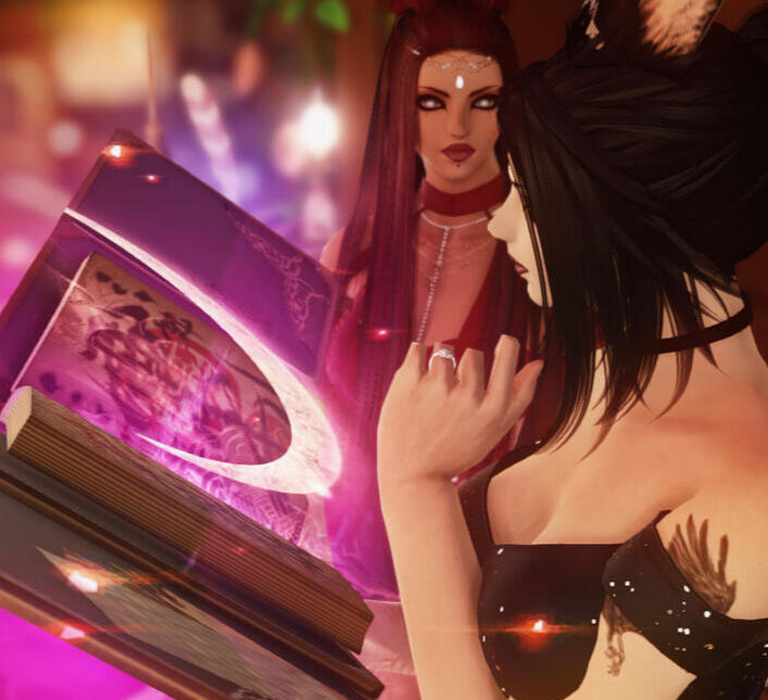 Deep within the heart of the Covenstead lies a treasure trove of knowledge that is beyond measure. Our library is unlike any other, for it is filled with librams and books from all corners of Eorzea. These tomes were acquired by our coven witches Lynnaes, Braely, and Vyna as they made their arduous journey westward from their homelands. As you peruse through our collection, you will find rare magics and arcane knowledge that were once held secret by tribal cultures. You will discover ancient grimoires, their leather-bound covers embossed with symbols and sigils that pulse with the very essence of magic. One such tome is the "Codex of the Black Moon," a collection of dark rituals and spells that are said to have been practiced by a lost tribe deep in the jungles of the South Seas. It speaks of blood magic and curses that can be used to bring about the most dire of circumstances, and of the sacrifices that must be made to harness their power. Another book that may catch your eye is the "Tome of the Crescent Moon," a treatise on lunar magic that was penned by a forgotten sect of scholars in the deserts of Thanalan. Within its pages, one can learn the secrets of the moon's phases and how to harness their power for divination and ritual. But our library is not just filled with ancient tomes and obscure grimoires. We also have a vast collection of more contemporary works that cover a wide range of subjects, from herbology to astrology to alchemy. No matter what your interests or needs may be, we are certain that our non-traditional library will have something to offer.